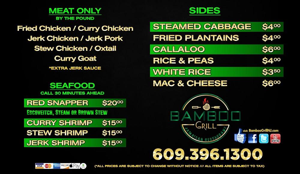 Welcome to Bamboo Grill Jamaican Restaurant, your home for authentic Jamaican cuisine! Located at 1005 Chambers St, Trenton, NJ, we invite you to savor rich flavors and local specialties that bring a taste of Jamaica to your table. Enjoy our casual atmosphere while indulging in hearty breakfasts, vibrant lunches, and satisfying dinners. Whether you're dining in, taking out, or enjoying our catering services, we cater to all dietary preferences, including vegetarian options. With convenient parking and accessibility, families and tourists alike will find a warm welcome. Join us today for a delightful culinary experience!